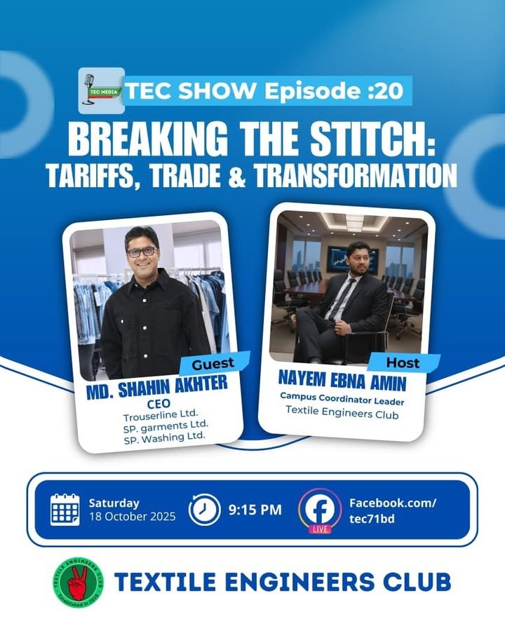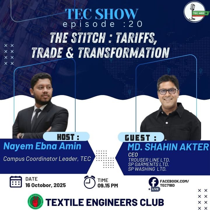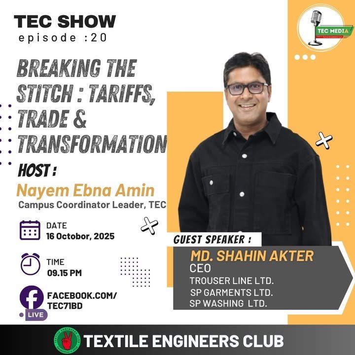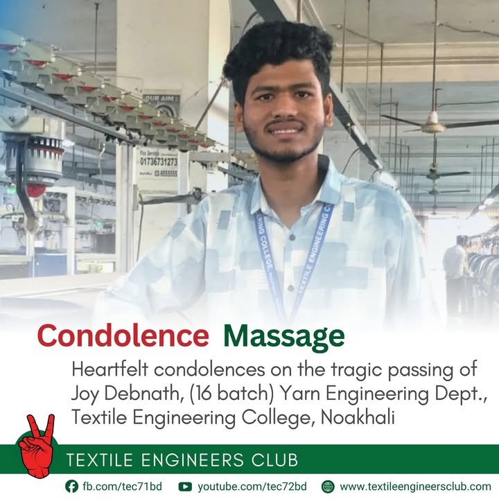 শোকবার্তা | টেক সহ-পরিকল্পনা সম্পাদক হাদিউজ্জামানের ইন্তেকাল টেক্সটাইল ইঞ্জিনিয়ার্স ক্লাবের সম্মানিত সহ-পরিকল্পনা সম্পাদক জনাব মো: হাদিউজ্জামান হাদী আজ ভোর ৫.২০টায় ঢাকার আজগর আলী হসপিটালে চিকিৎসাধীন অবস্থায় মৃত্যুবরণ করেছেন। ইন্না লিল্লাহি ওয়া ইন্না ইলাইহি রাজিউন। তার আকস্মিক মৃত্যুতে টেক্সটাইল ইঞ্জিনিয়ার্স ক্লাব পরিবার গভীরভাবে শোকাহত। আমরা মরহুমের আত্মার মাগফিরাত কামনা করি। (Feed generated with FetchRSS) Read More